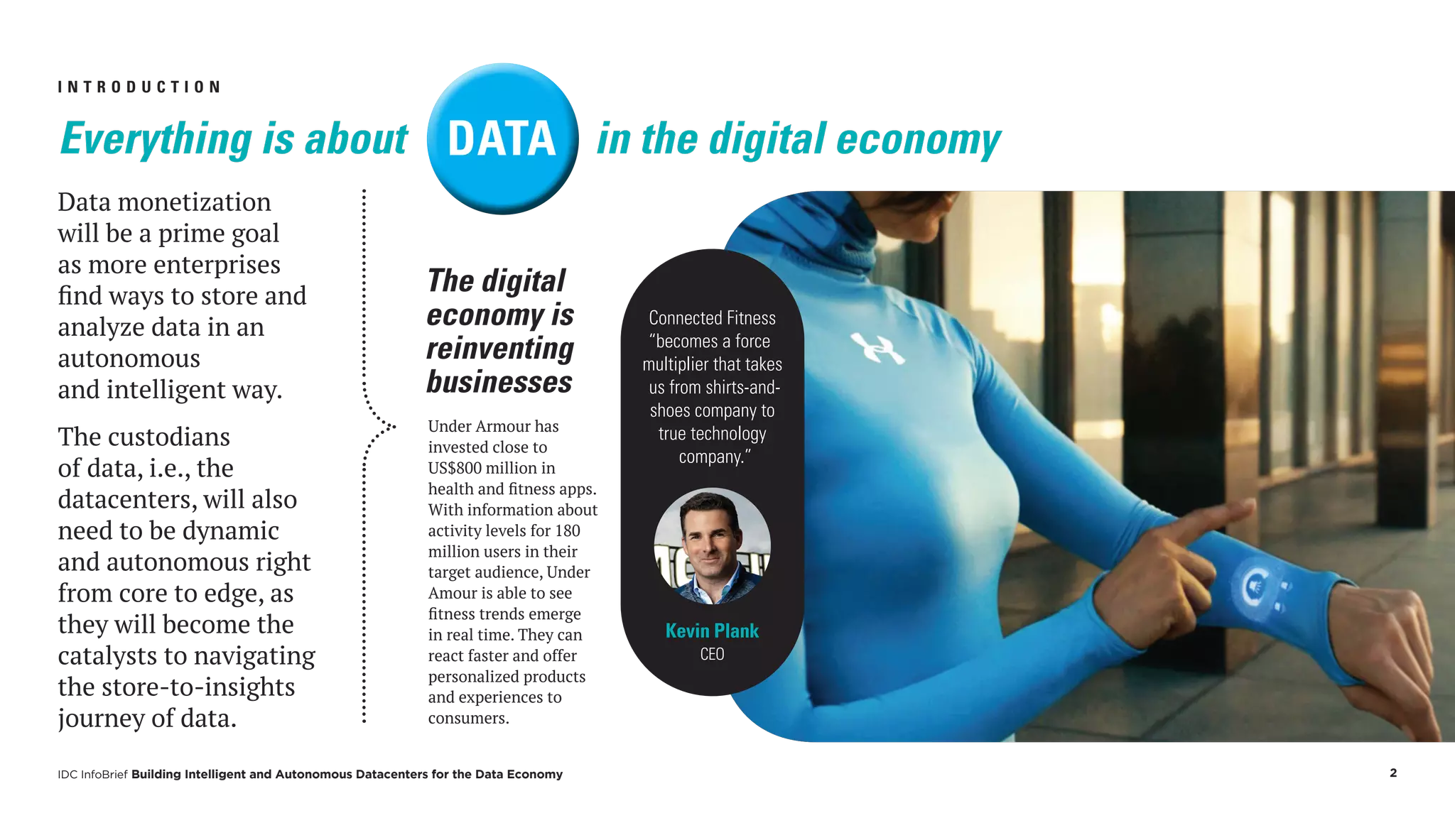 The IDC Infobrief discusses the transition to intelligent and autonomous datacenters driven by the demands of the digital economy, emphasizing the critical role data plays in business transformation. As enterprises increasingly seek to monetize data and adopt automated infrastructures, the necessity for adaptable, AI-embedded solutions becomes paramount. By 2021, a significant portion of enterprise datacenters is expected to operate autonomously, signaling a shift towards more efficient data management and utilization.