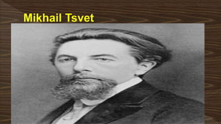 Chromatography separates compounds in a mixture through continuous distribution between a mobile and stationary phase. Tsvet invented adsorption chromatography in 1901 using a liquid-adsorption column. His work was initially ignored due to political violence. HPLC is a widely used analytical technique that separates compounds via their interactions with a mobile and stationary phase in a column. It provides fast, efficient, and reproducible separation of complex mixtures.