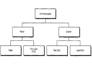 This document provides an overview of high-performance liquid chromatography (HPLC) and its use in pathology. It describes the basic components and separation mechanisms of chromatography, including mobile phase, stationary phase, and how separation occurs. It then discusses various types of chromatography techniques like ion exchange, partition, size exclusion, and affinity chromatography. The document focuses on HPLC, describing its instrumentation including reservoirs, pumps, injectors, columns, and detectors. It explains how HPLC provides improved resolution, speed, and reproducibility over other chromatography methods.