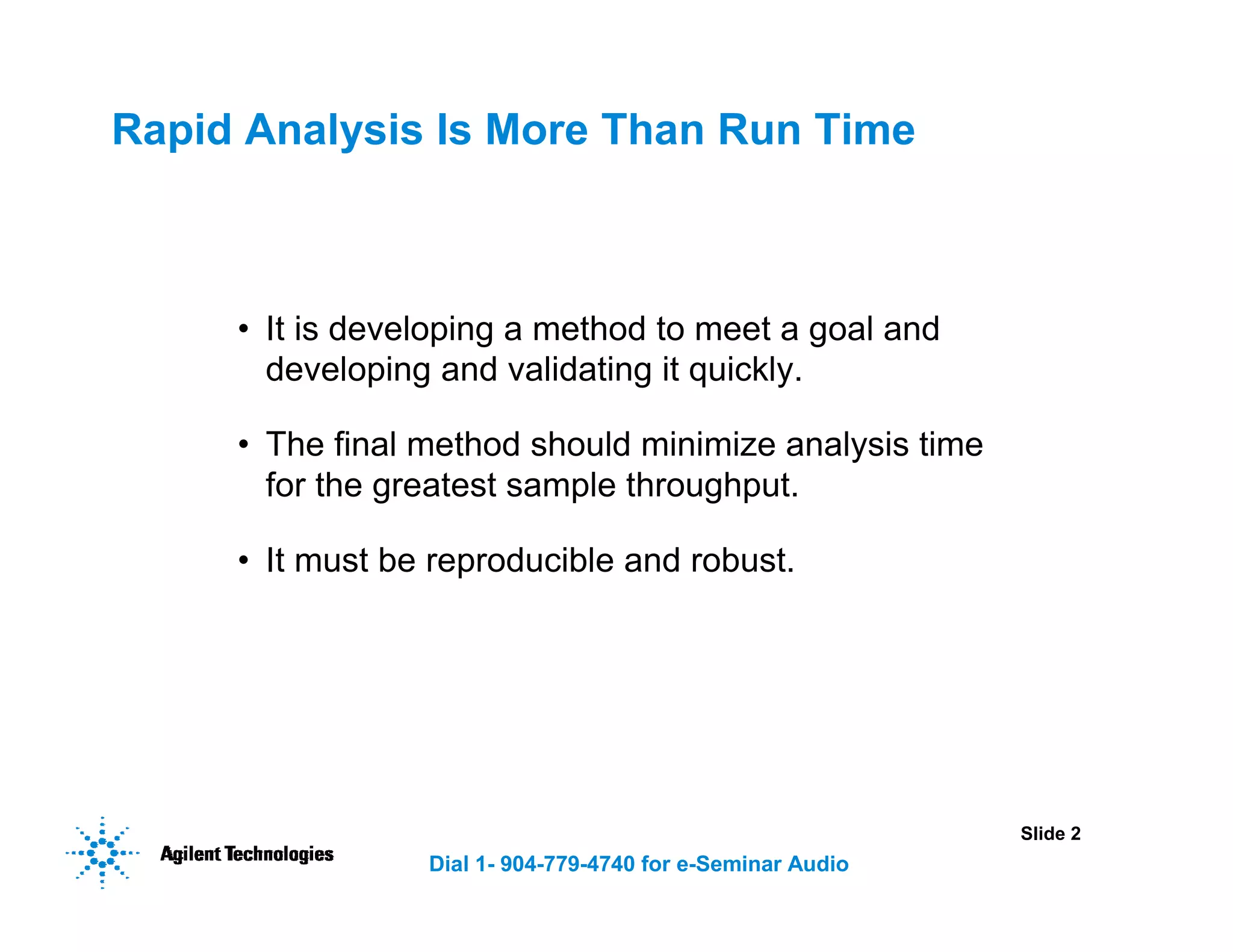 The document discusses rapid HPLC method development. It outlines four critical aspects of rapid development: sample preparation, column selection, column configuration, and instrument optimization. Choosing the right bonded phase is key to achieving resolution. Common phases like C18 and C8 are recommended initially, with specialized phases for difficult samples. The document provides examples of developing methods for various sample types using different columns and conditions based on a rapid development scheme. Developing at low pH first and using temperature, then moving to mid pH if needed, can reduce analysis time while maintaining resolution and reproducibility.