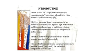 High Performance Liquid Chromatography is a document by Dr. Nidhi Gupta about the topic of high performance liquid chromatography. Dr. Nidhi Gupta is an assistant professor at MMCP in Mullana, Ambala, India. The document provides information about high performance liquid chromatography but does not include any specific details.