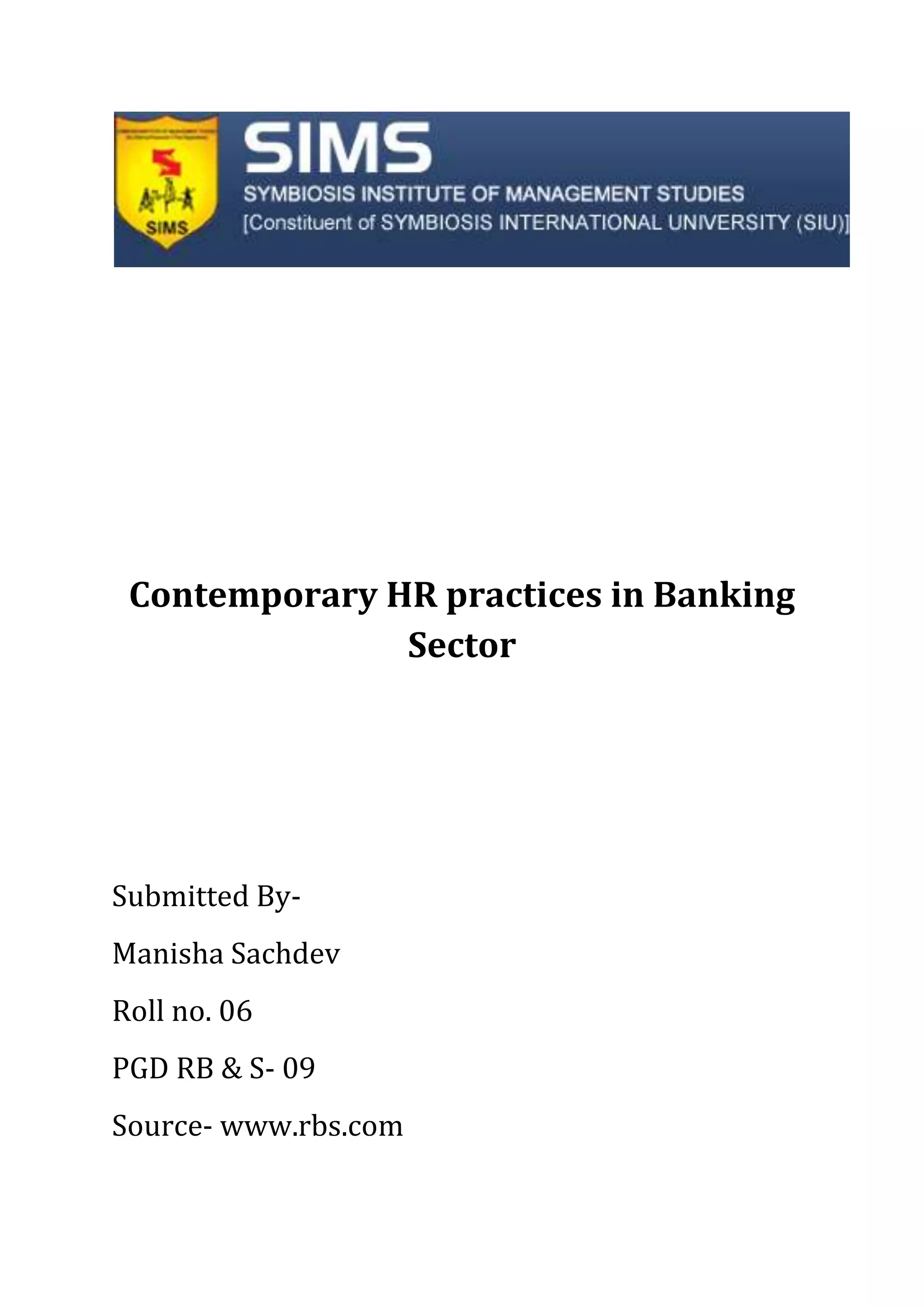 The Royal Bank of Scotland (RBS) sees its human resources function as playing a valuable role in contributing to the bank's business success. RBS aims to equip HR professionals to understand business drivers and how HR can add value, rather than just focus on administrative tasks. The bank invests in employee training, diversity, work-life balance policies, and uses an annual employee survey to evaluate HR efforts and benchmark against peers. RBS also focuses on social responsibilities like financial education initiatives and reducing its environmental impact.