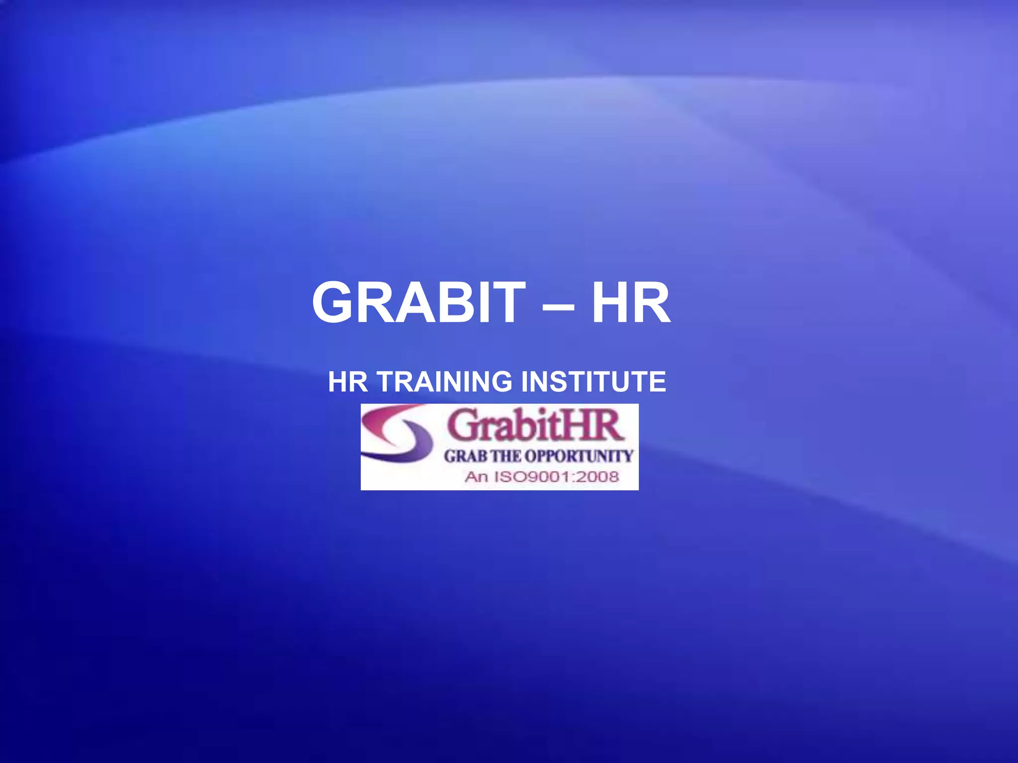 The document provides information about an HR training institute. It summarizes that the institute aims to provide a holistic overview of key HR functions and concepts to groom students as well-rounded HR professionals. It covers topics from basics to advanced levels across the entire HR domain. The training benefits students by teaching essential HR skills and insights into recruitment best practices, statutory compliances, and how to apply their new knowledge immediately.