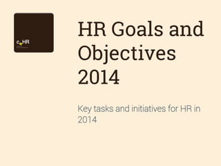 The document outlines key HR goals and objectives for 2014, emphasizing simplification, innovation, agile management, big data utilization, talent acquisition, social media engagement, and leadership development. It reflects on the challenges faced in 2013, including a competitive talent market and the need for HR to adapt to new technologies and cultural shifts. The focus for 2014 is on creating efficient processes, enhancing corporate culture, and developing internal talent to ensure HR's strategic alignment with organizational goals.