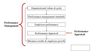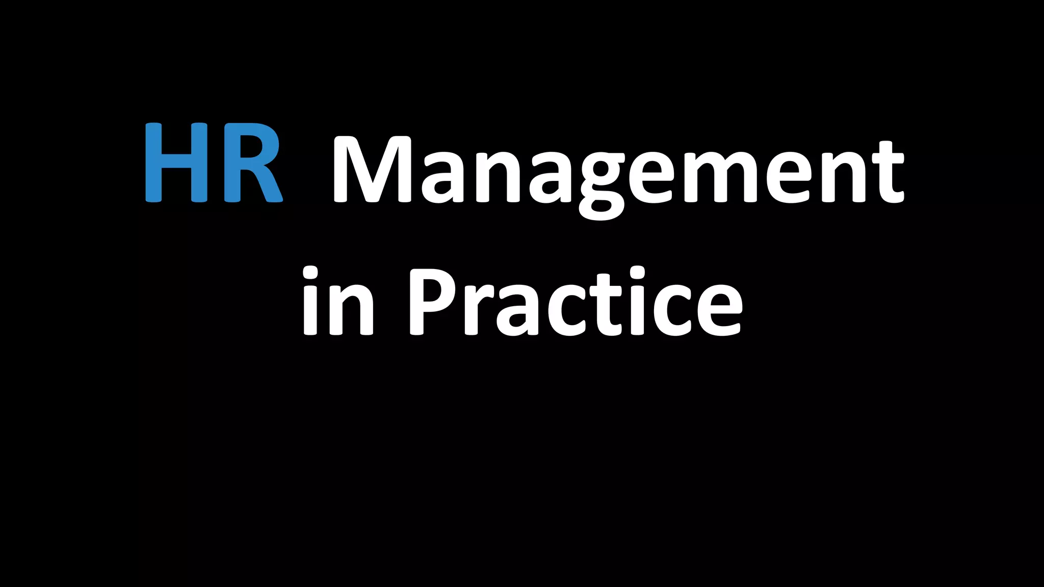 The document discusses HR management practices, including the purpose of HR functions, major HR functions, recruitment and selection processes, training and development, and performance management. Specifically, it covers topics such as job analysis, types of recruitment, interviewing best practices, training needs assessment, and training delivery methods. The overall purpose of HR according to the document is to hire, retain, and develop talents to achieve organizational goals.