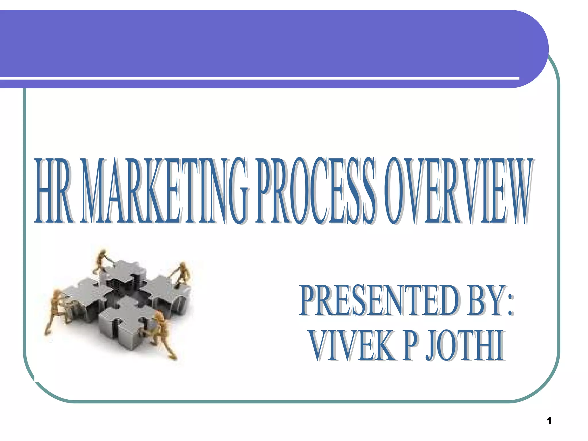 XYZ Inc established an HR marketing process to attract high quality SAP resources as a new startup. They set goals to hire 100 SAP talents in 1 year. An HR marketing organization was formed and conducted research, developed a campaign strategy using various media, implemented the campaign, and checked effectiveness by revising the strategy. As a result, XYZ Inc was able to reach its hiring goal through following the HR marketing process.