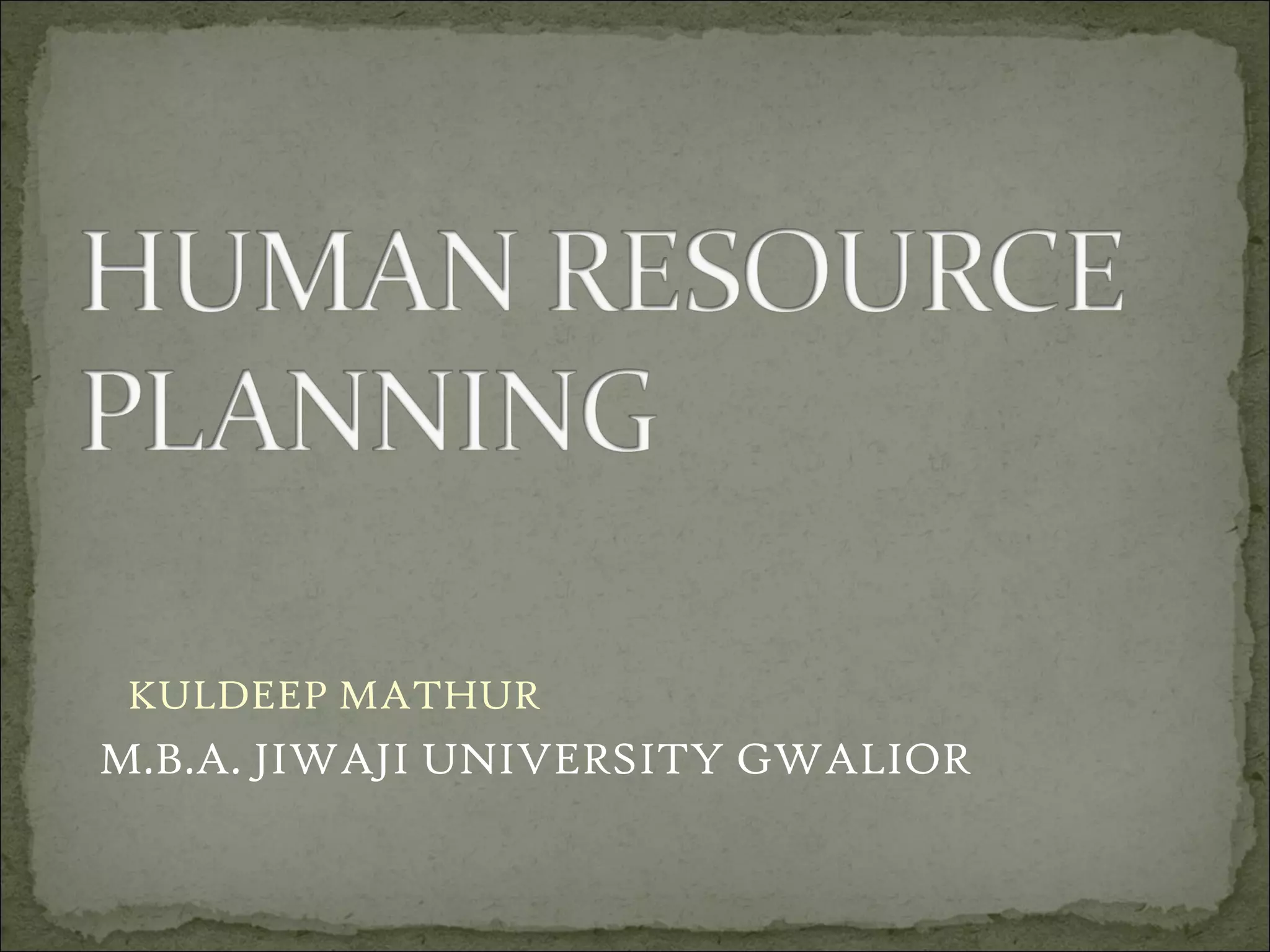 1. Human resource planning involves forecasting an organization's future workforce needs and determining how to meet those needs.