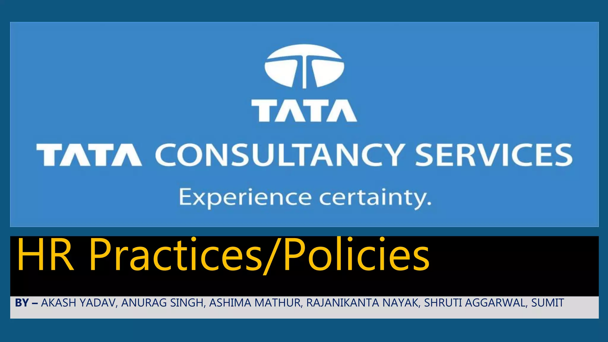 TCS was founded in 1968 and provides IT, BPO, and engineering services. It focuses on training employees through various programs to gain new skills and invests in talent development. The company also has policies around career management, diversity and inclusion, working hours, leaves, and learning programs to engage and develop its talent.