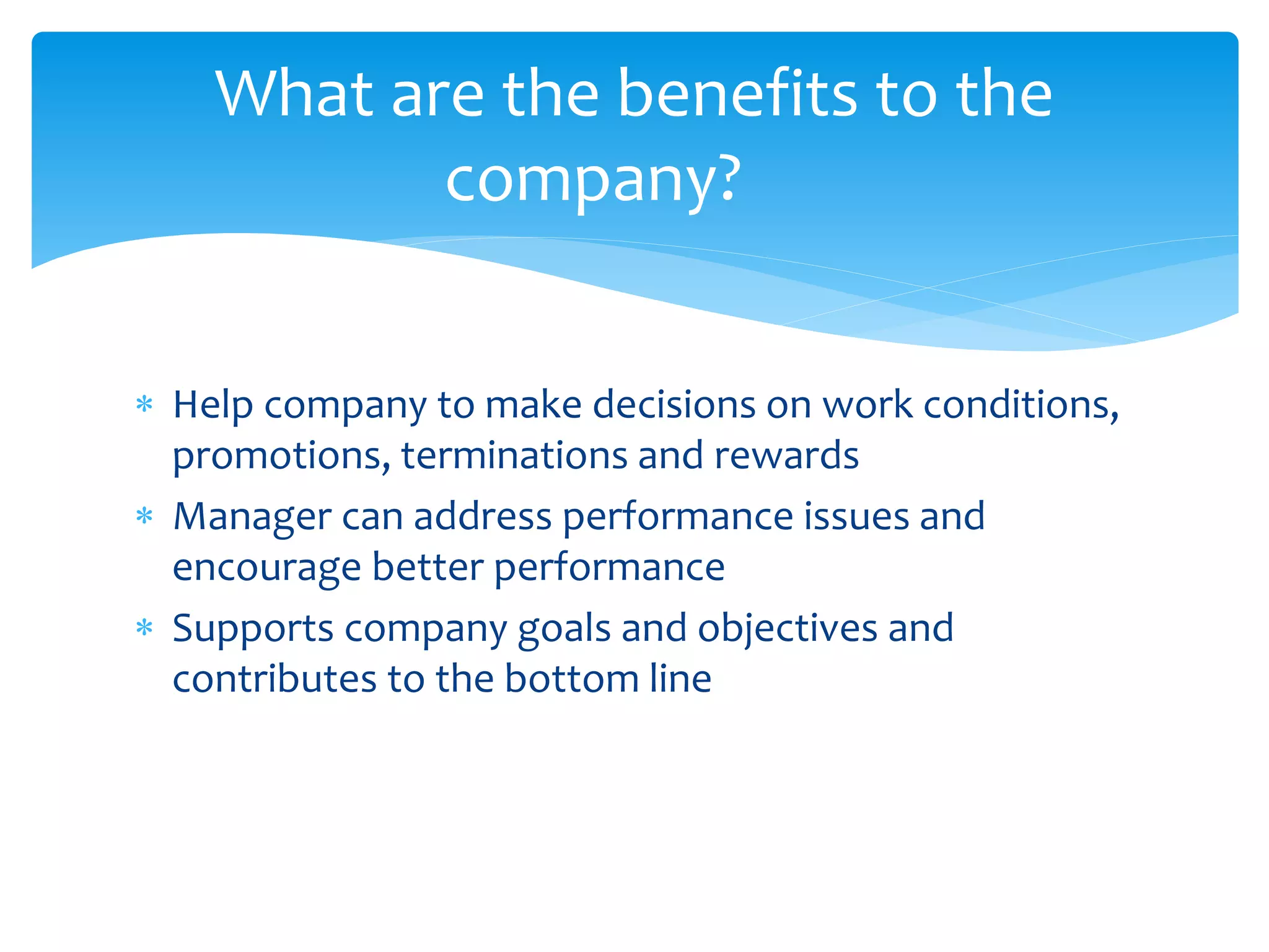 Performance appraisals benefit both companies and employees by helping make decisions about promotions, terminations, and rewards. They also address performance issues and encourage improvement. A pre-appraisal process involves reviewing goals, work performance, and feedback. During appraisals, managers should avoid spotlighting flaws or lecturing to add value. Post-appraisal activities like reviewing goals and targets are important. Succession planning benefits companies by retaining talent, reducing costs, and allowing for knowledge transfer and succession. It should involve assessing internal candidates for short and long-term fits.