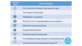 The document discusses 9 key HR trends: