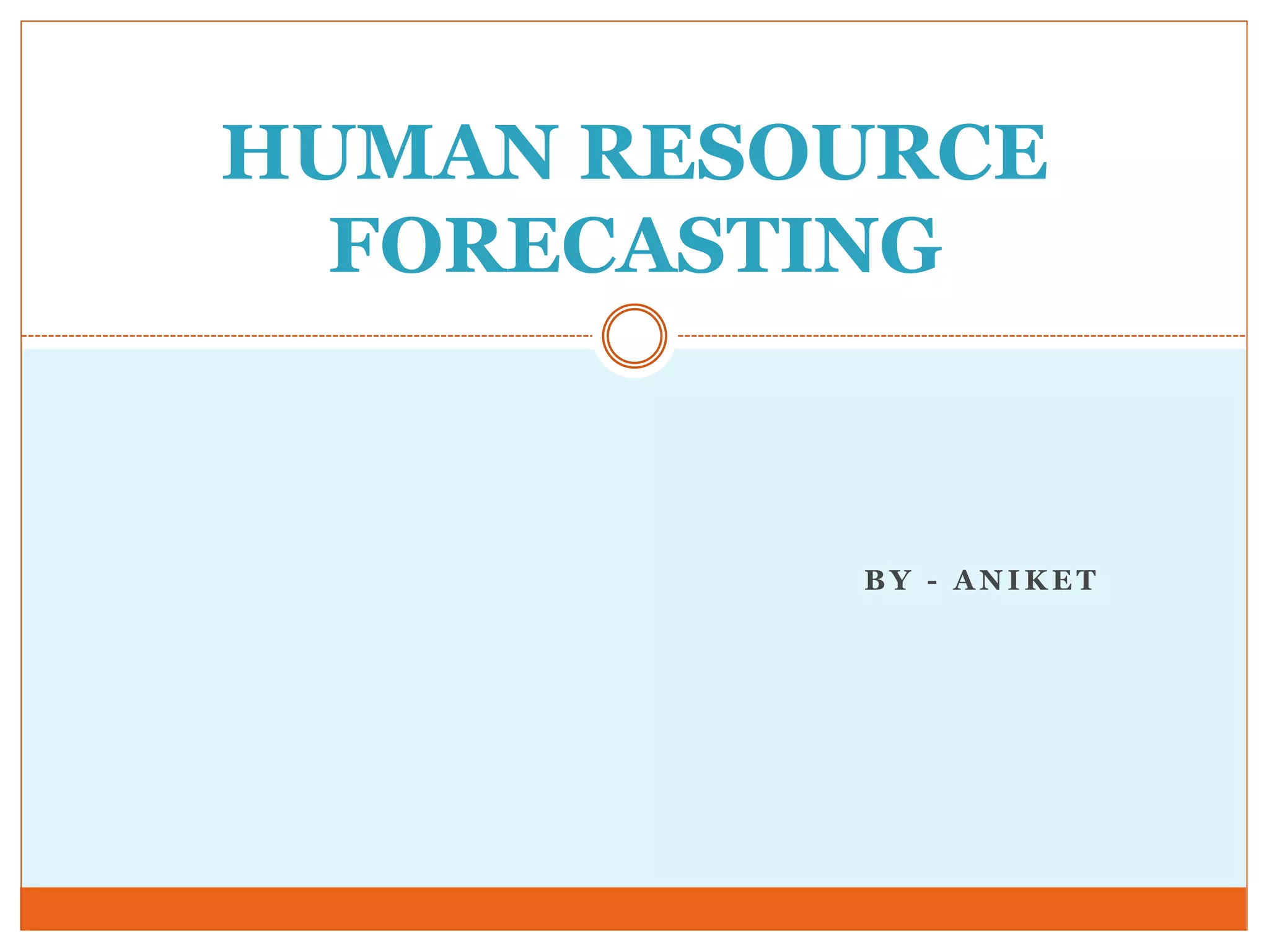 Human resource forecasting is the process of predicting the need for employees and their skills. Techniques for forecasting include managerial judgment (both bottom-up and top-down approaches), brainstorming, the Delphi technique, econometrics models, and work study techniques. Supply forecasting methods include trend analysis, competency models, replacement charts, and succession planning.