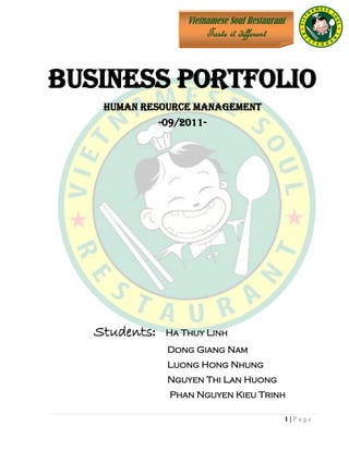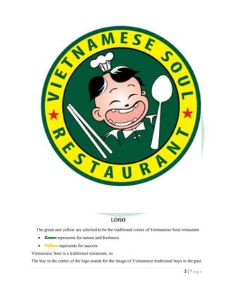 Vietnamese Soul Restaurant is opening a new location and developing its business plan. The document includes: