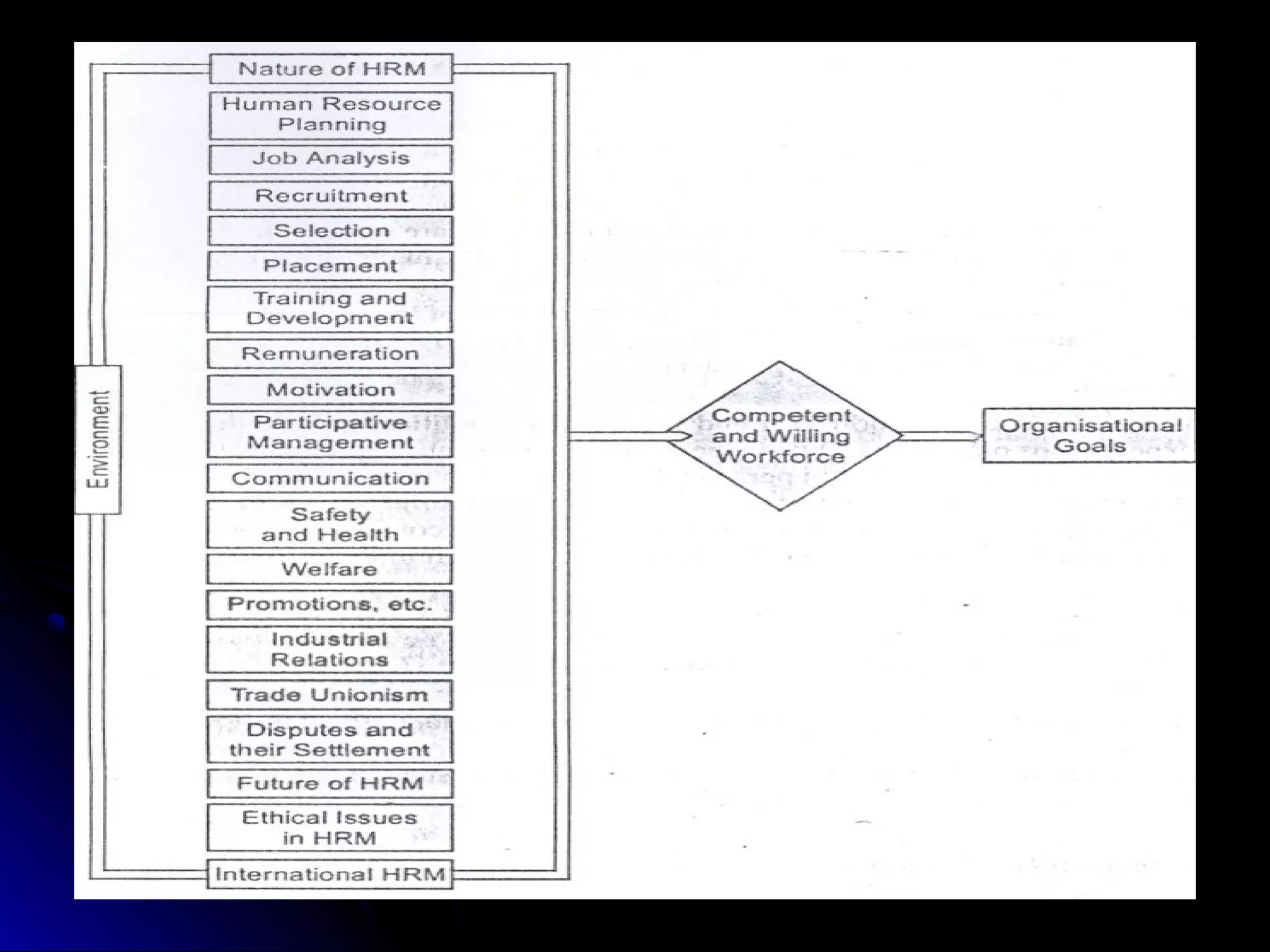 The document provides an overview of human resource management (HRM). It discusses the nature of management including different perspectives. It outlines the key HRM functions such as planning, organizing, staffing, leading, and controlling. It explains the line and staff aspects of HRM including the responsibilities of line managers. The document defines HRM and discusses its history. It describes the objectives of HRM from organizational, personal, and societal perspectives. Several HRM models are outlined including Fombrun, Tichy & Devanna, Harvard, David Guest, Warwick, and John Storey. The document provides a comprehensive introduction to the field of HRM.