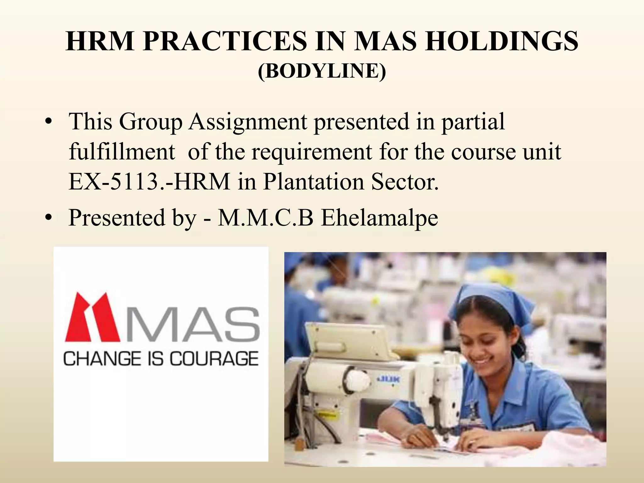This document summarizes the HRM practices at Bodyline, a joint venture apparel manufacturer in Sri Lanka. It discusses Bodyline's 4 pillar HRM plan focusing on attraction, engagement, development, and inspiration. Key practices include recruitment through CSR activities, incentives and bonuses, on-the-job and external training programs, empowering women employees, and maintaining good employee relations through events and grievance processes. The HRM practices help Bodyline achieve low turnover while strengthening its business strategy and talent retention. Areas for improvement include building a second team to meet future production needs and making training programs less limited by business demands.