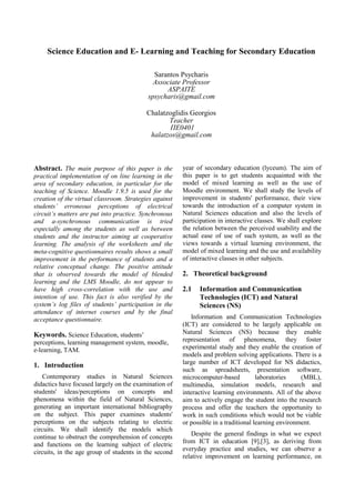 This paper investigates the implementation of online learning through Moodle for secondary education, focusing on mixed learning models in natural sciences. It explores student perceptions of electric circuits, the effectiveness of ICT in education, and the role of teachers in facilitating concept correction. Findings indicate improvements in student performance, but persistent misconceptions remain, highlighting the challenges of integrating e-learning systems in traditional educational settings.
