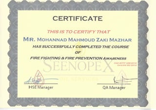 Hse courses certificates