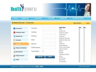 The HealthSmartID card system is a portable medical record that enhances healthcare efficiency by providing real-time access to patient data through biometric authentication and a synchronized patient portal. It addresses interoperability issues in healthcare, streamlines patient registration, reduces duplicate records, and minimizes insurance claim rejections. The system supports meaningful use criteria, making it eligible for government incentives and improving overall patient experience.
