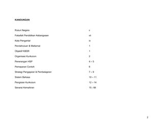 Dokumen ini adalah huraian sukatan pelajaran untuk Tahun 3 Bahasa Melayu di Malaysia, yang bertujuan membantu guru merancang dan melaksanakan pengajaran yang berkesan. Ia merangkumi objektif, hasil pembelajaran, dan strategi pengajaran yang mengedepankan kemahiran berfikir, kebudayaan, dan patriotisme. Huraian ini menggariskan tahap kesukaran pembelajaran yang perlu dikuasai oleh murid sesuai dengan pendekatan pendidikan yang holistik.