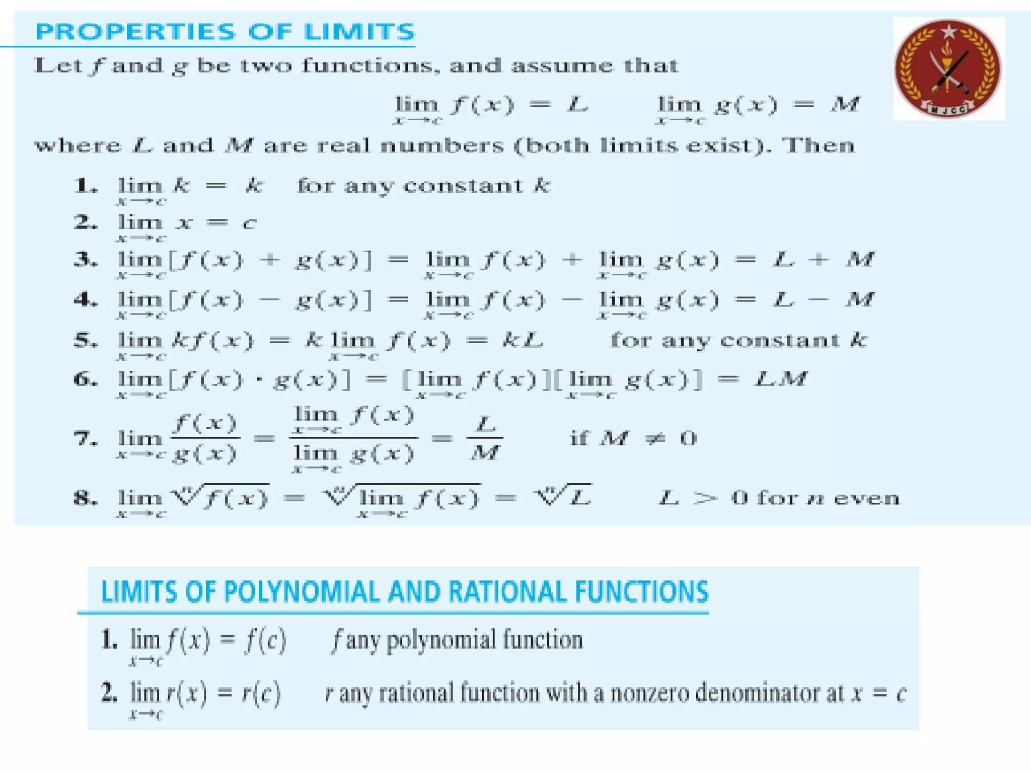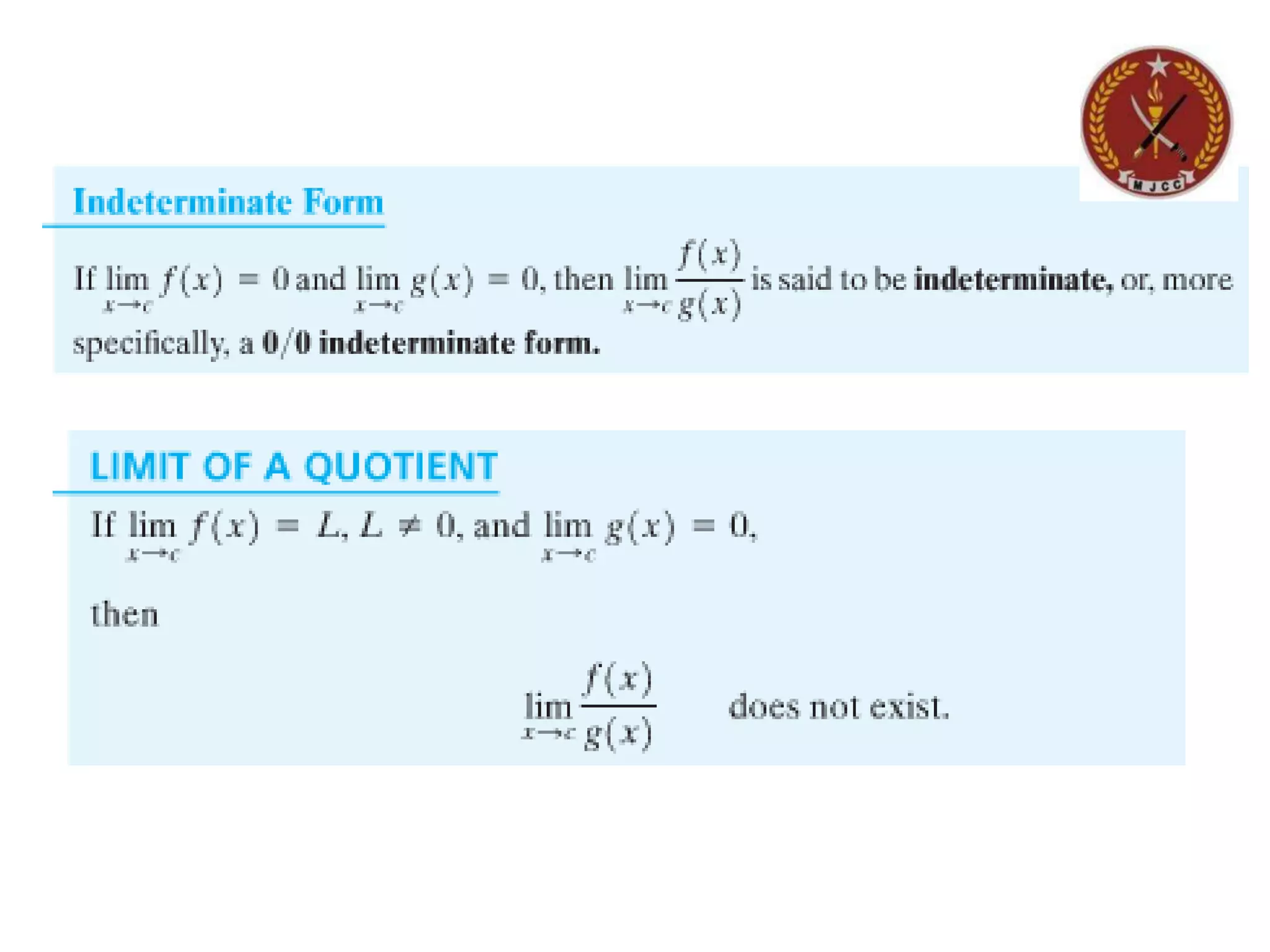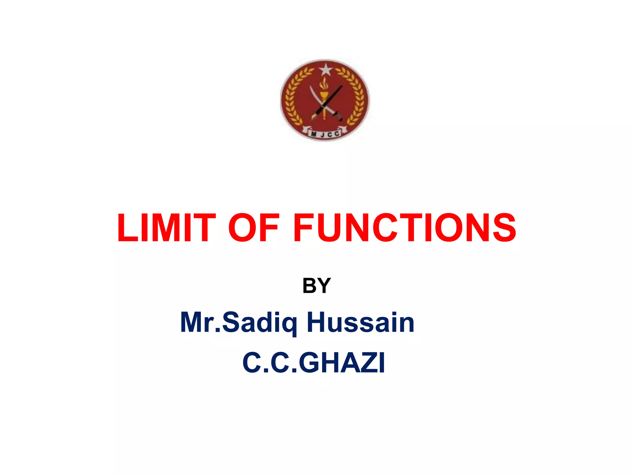 The document discusses limits of functions. It begins by defining key terms like "x approaches zero" and outlines learning outcomes related to limits. Examples are provided to illustrate calculating average and instantaneous rates of change using limits, as well as one-sided limits. The document explains that a limit exists only if the left-hand and right-hand limits are equal. Several examples demonstrate evaluating limits algebraically and graphically for various functions, including limits of rational functions. The document concludes by discussing indeterminate forms that arise when evaluating certain limits.