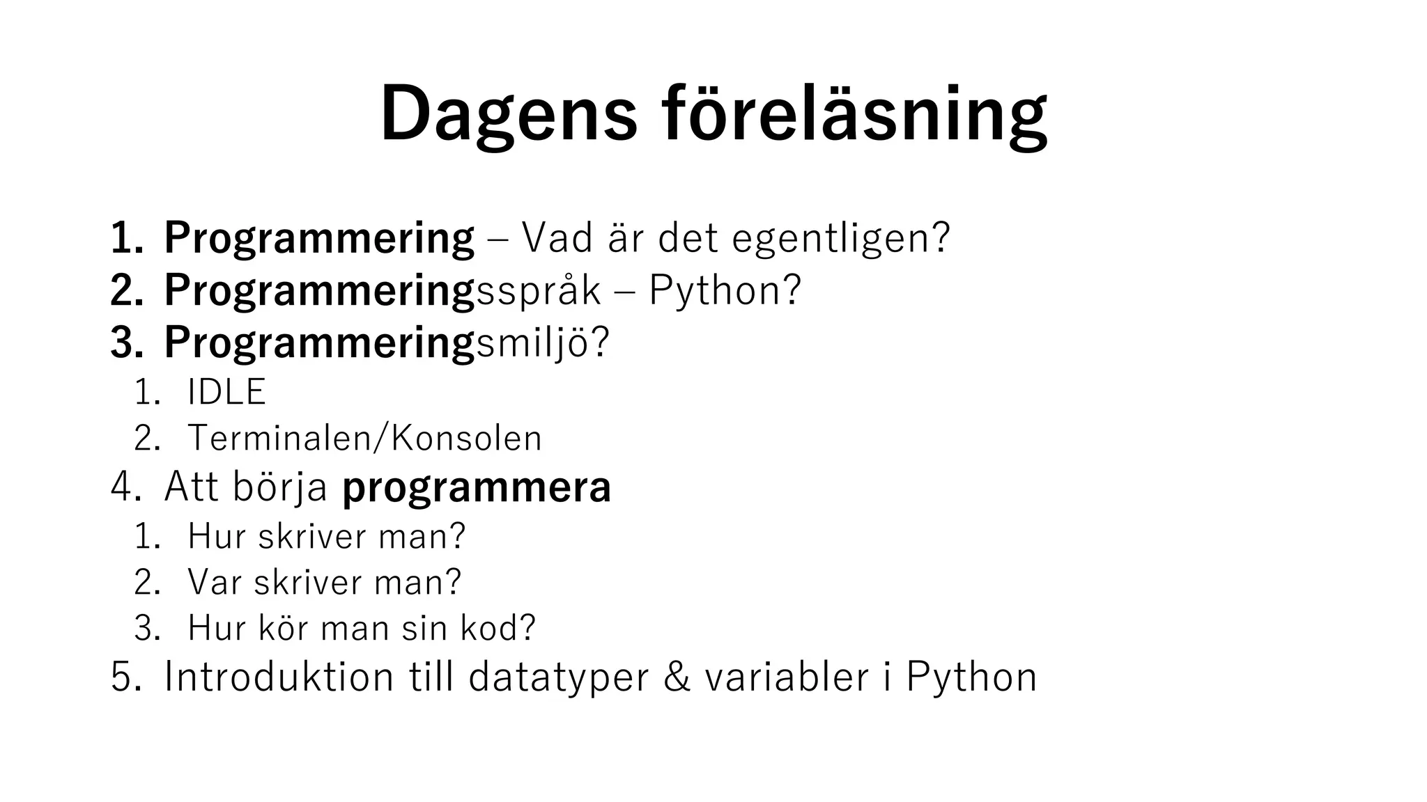 • T.ex. Python, JavaScript, C#,, C++, Java, PHP, Ruby, etc.