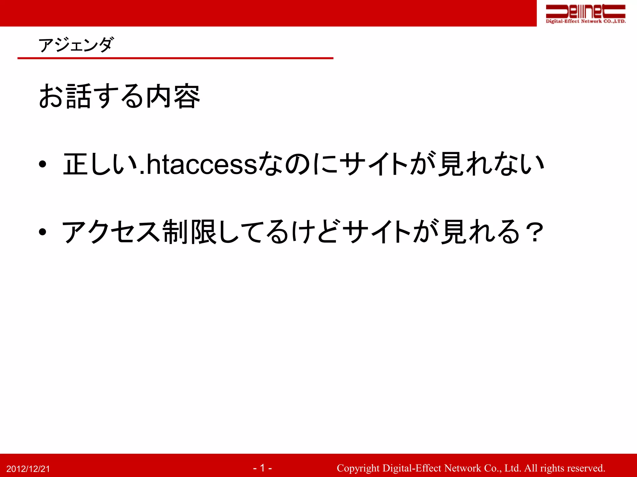 httpd.confとの関係を知らないまま、.htaccessを気軽に設置したりすると、思わぬところで