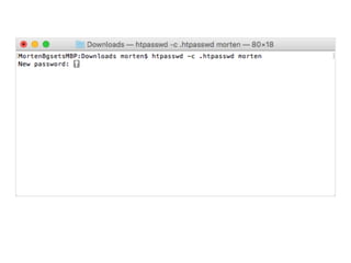 The document discusses various ways to configure .htaccess files to modify Apache server behavior. Some examples covered include:
