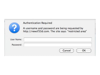 2. Authentication and authorization using Auth directives like AuthUserFile and AuthGroupFile to password protect directories.