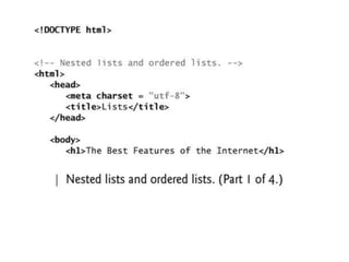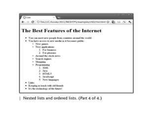 The document discusses the history and evolution of the Internet and World Wide Web. It begins with the creation of ARPANET in 1969, which laid the foundations for the Internet. In 1989, Tim Berners-Lee developed HTML, URLs, and HTTP, which led to the creation of the World Wide Web. The document then explores differences between the Internet and Web and describes various versions of the Web from Web 1.0 to the proposed Web 5.0. It also discusses basic web architecture including clients, servers, and different tiered architectures.