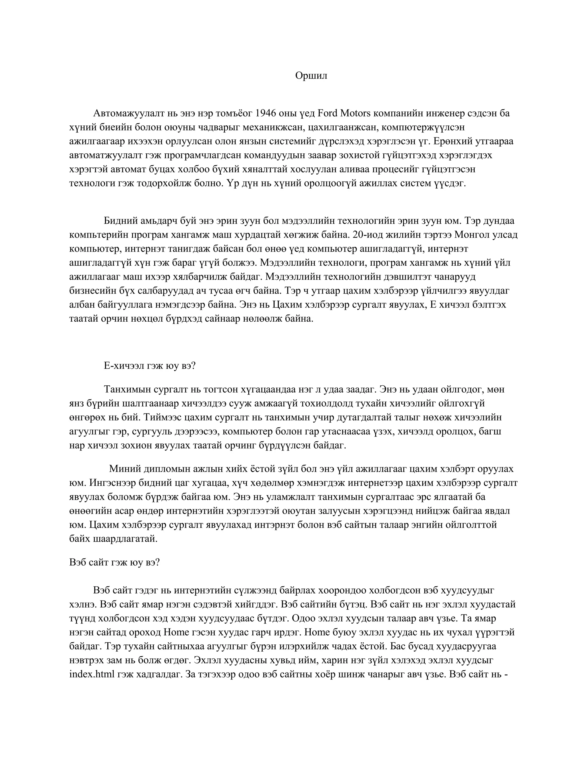 компьютерийн хэрэглээ I хичээлийн бие даалт PDF