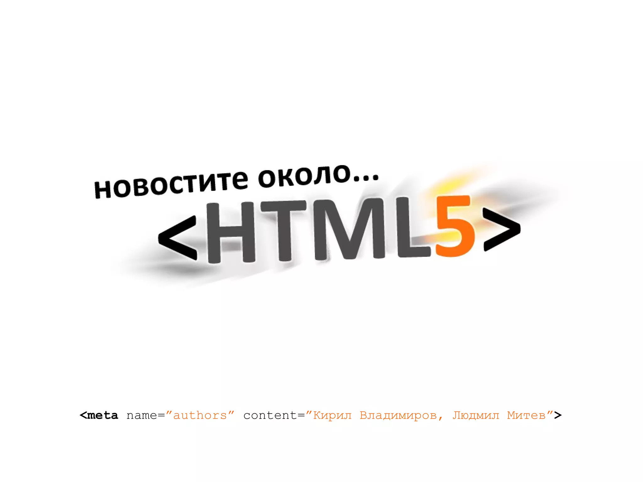 В: Каквое HTML 5 ? О: HTML5 == HTML + JavaScript APIs