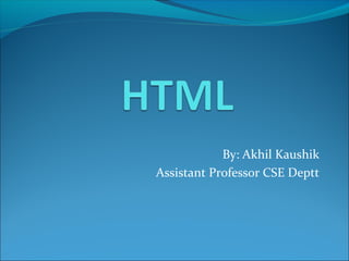 This document introduces HTML (Hypertext Markup Language) and describes some of its basic tags and features. It explains that HTML is a markup language used to structure and format web pages using tags. It then lists some common HTML tags like <html>, <head>, <title>, <body>, <h1>-<h6> for headings, <b> for bold, <i> for italics, and <a> for links. The document provides examples of simple HTML pages using these tags to demonstrate headings, paragraphs, lists, tables, forms, and more.