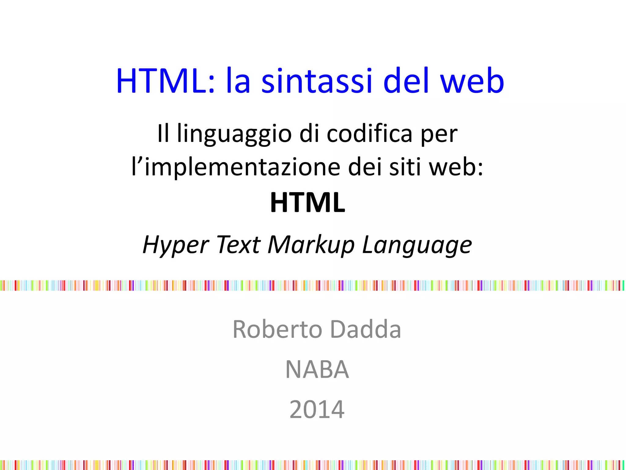 Il documento descrive l'HTML (Hyper Text Markup Language) come linguaggio di codifica per la creazione di pagine web, introdotto da Tim Berners-Lee nel 1991, e l'importanza della standardizzazione tramite il W3C. Viene esplorata la sintassi, la codifica e la denominazione dei tag HTML, evidenziando i concetti di markup e di gerarchia nel contenuto. Si discute anche degli aspetti pratici della scrittura e visualizzazione di documenti HTML, inclusi metadati e proprietà del corpo della pagina.