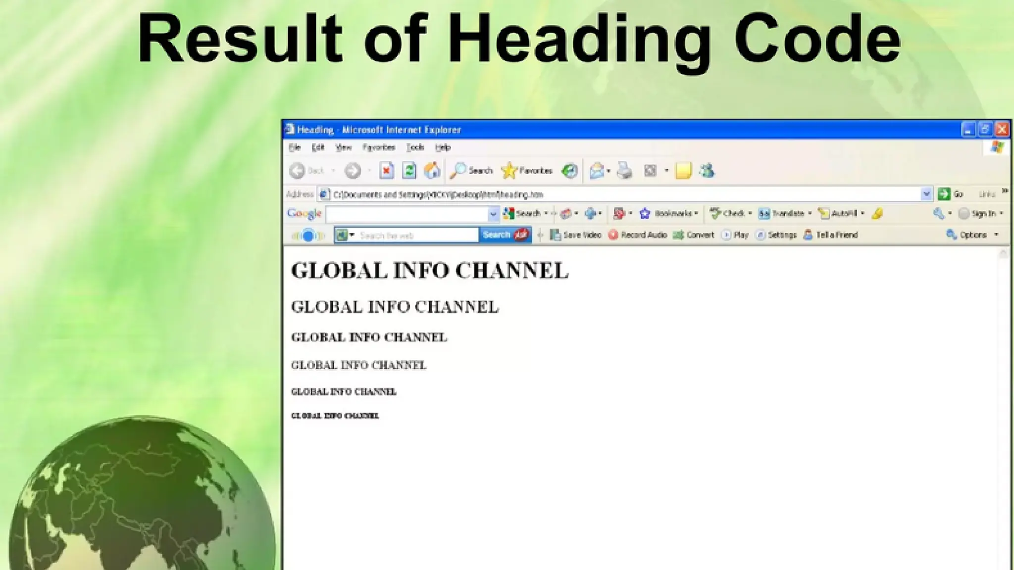 Heading tag code