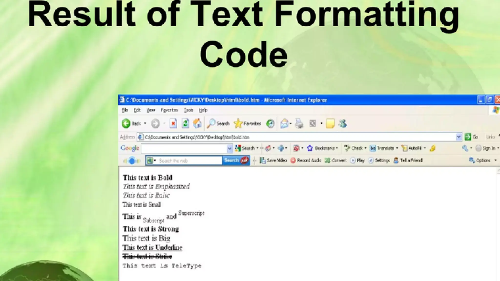 Font tag code