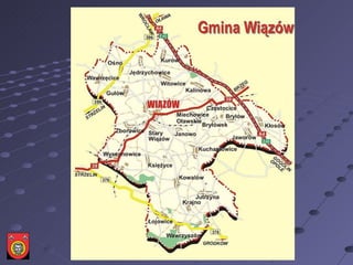 MIASTO I GMINAWIĄZÓW Wiązów - miasto w powiecie strzelińskim, w województwie dolnośląskim. Położone na Równinie Wrocławskiej, nad rzeką Oława, 30 km na południowy wschód od Wrocławia. Położenie geograficzne: 50°49'N, 17°12'E. Gminię Wiązów tworzą 24 sołectwa. Gmina posiada idealne położenie logistyczne. Przez tereny gminy przebiega autostrada A4 z dwoma węzłami: Brzezimierz i Przylesie, droga krajowa nr 39 oraz sieć dróg wojewódzkich i gminnych. Gmina Wiązów jest gminą rolniczą. Udział użytków rolnych w stosunku do powierzchni całkowitej wynosi 87%. Obszar gminy Wiązów zaliczony został do obszarów województwa dolnośląskiego, na którym istnieją szczególnie korzystne warunki dla intensywnego rozwoju produkcji rolniczej. Na terenie gminy, poza związanymi z rolnictwem, funkcjonują głównie niewielkie zakłady produkcyjne i rzemieślnicze, zatrudniające do 30 osób.
