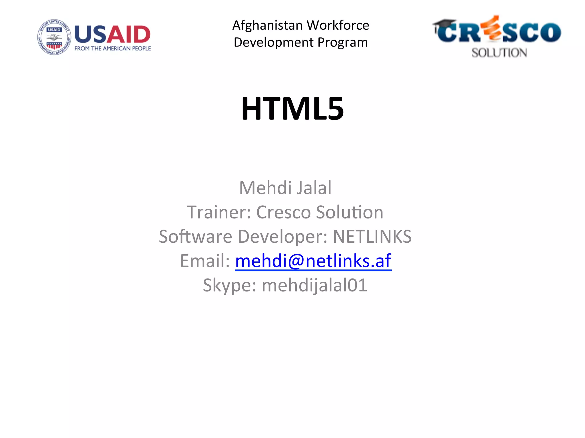 The document discusses HTML5 and provides an agenda for an HTML5 training session. It introduces HTML5 and covers new HTML5 elements, the <canvas> element for drawing graphics, and how to draw paths, boxes, circles and text on the canvas using JavaScript. It also briefly mentions HTML5 features for media, storage, and forms.