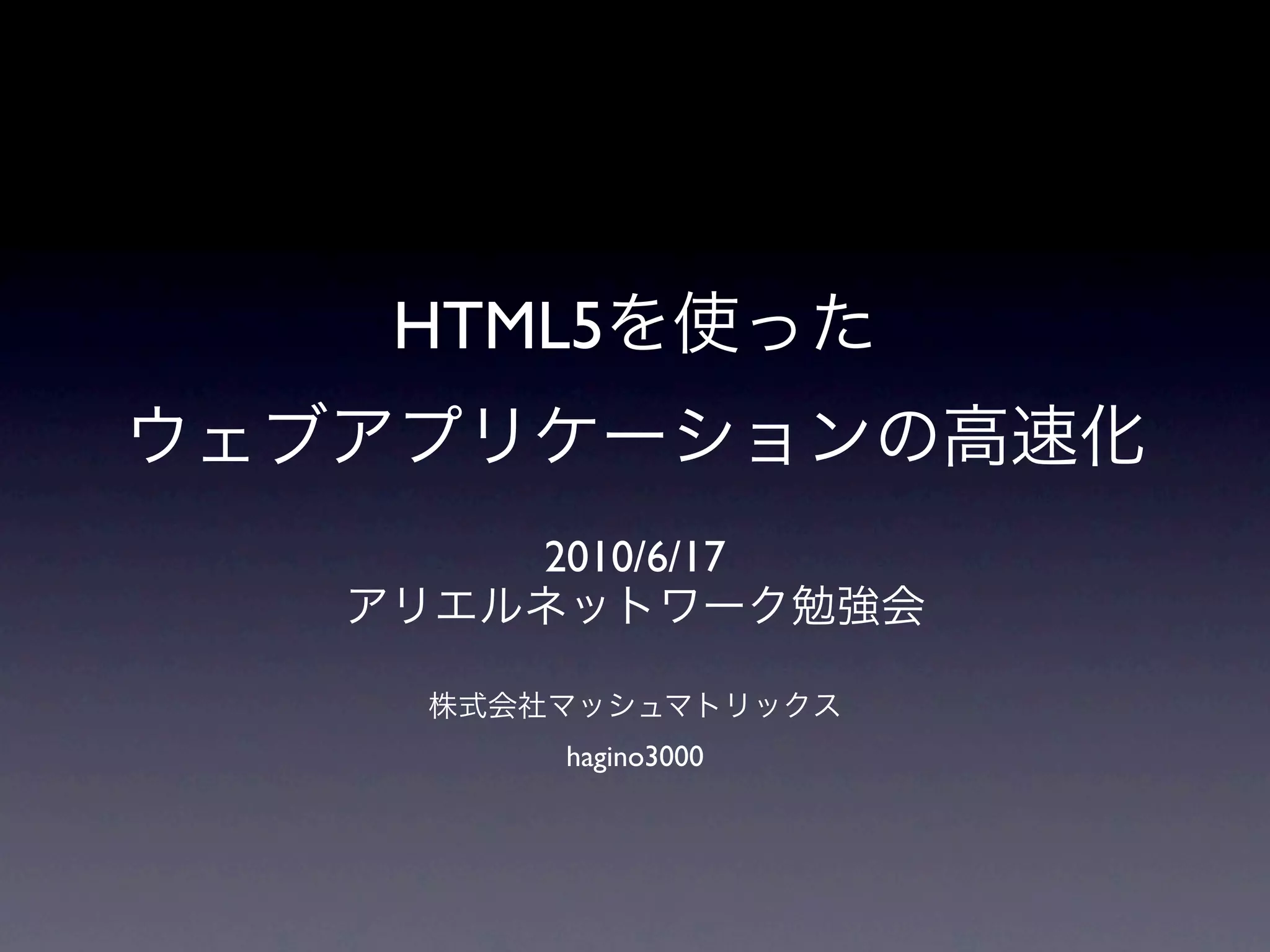 HTML5を使ったウェブアプリケーションの高速化 1. HTML5