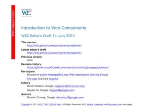 しっかり知りたい人は • http://blog.agektmr.com/2014/05/web-components.html • https://github.com/w3c/webcomponents •