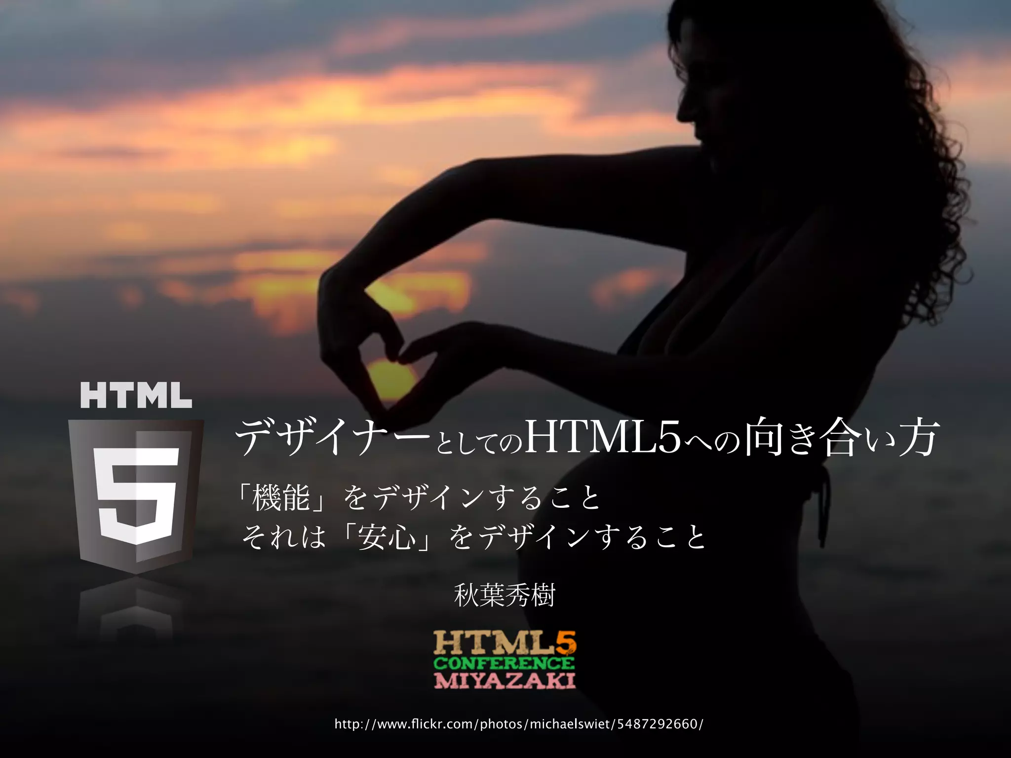 HTML5 Conference MIYAZAKIで講演したスライド「デザイナーとしてのHTML5への向き合い方」です。