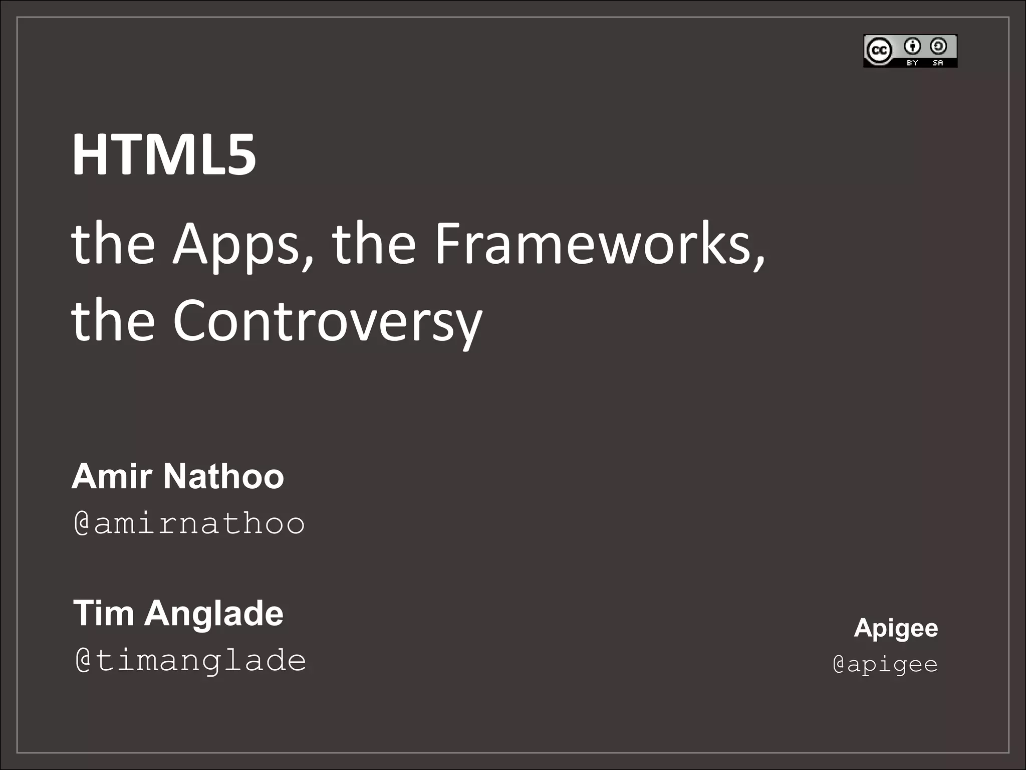 This document discusses HTML5, mobile web, native, and hybrid mobile app development platforms. It provides an overview of each approach and compares them. Key frameworks for HTML5 development are also reviewed, including jQuery Mobile, Sencha Touch, and Trigger.io. Considerations for choosing a platform like supporting multiple devices and iteration speed are examined. The document aims to help make sense of the different mobile development options.