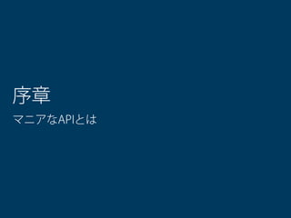 本セッションでは、ありきたりのモテ系APIに飽きたマニアな貴方のために、普段は陽の当たらないAPIを一挙紹介する。もちろん、どれかのブラウザーに実装されているAPIのみだ。今から使おうと思えば使えないことはない。そして、W3Cにて仕様策定が始まって日が浅いため、明日にはどうなるか分からない。無くなるかもしれないし、大幅に変更されてしまうかもしれない。今覚えても役に立たないかもしれないし、役に立つかもしれない。そんなスリリングなAPIを知ってこそマニアなのだ。