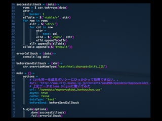 やっぱりとれなかった orz CSVのパースがやりたかったのでデータをSame Originにコピーした。。。 OpenDataのデモとしてダメダメなのはわかってますw