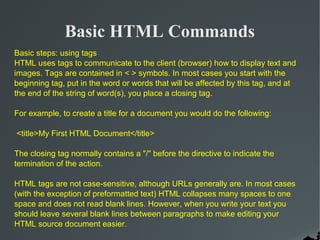 - HTML is the predominant markup language for web pages and provides structure through tags like headings, paragraphs, lists, links, etc.