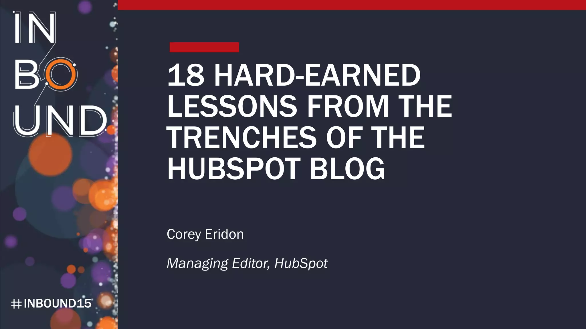 This document outlines 18 lessons learned from managing HubSpot's blog. Some of the key lessons include: big name authors don't guarantee results; most traffic comes from old posts not new real-time posts; salespeople should provide topic input but not write the posts themselves; depth of content differentiates good posts from great ones; and scale comes with time as traffic and leads increase from older posts over months and years.