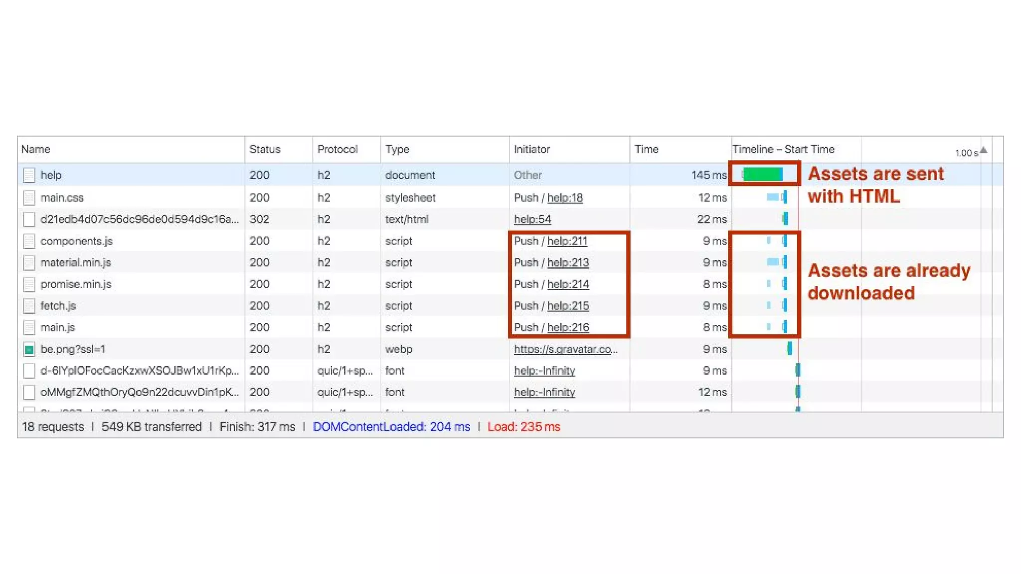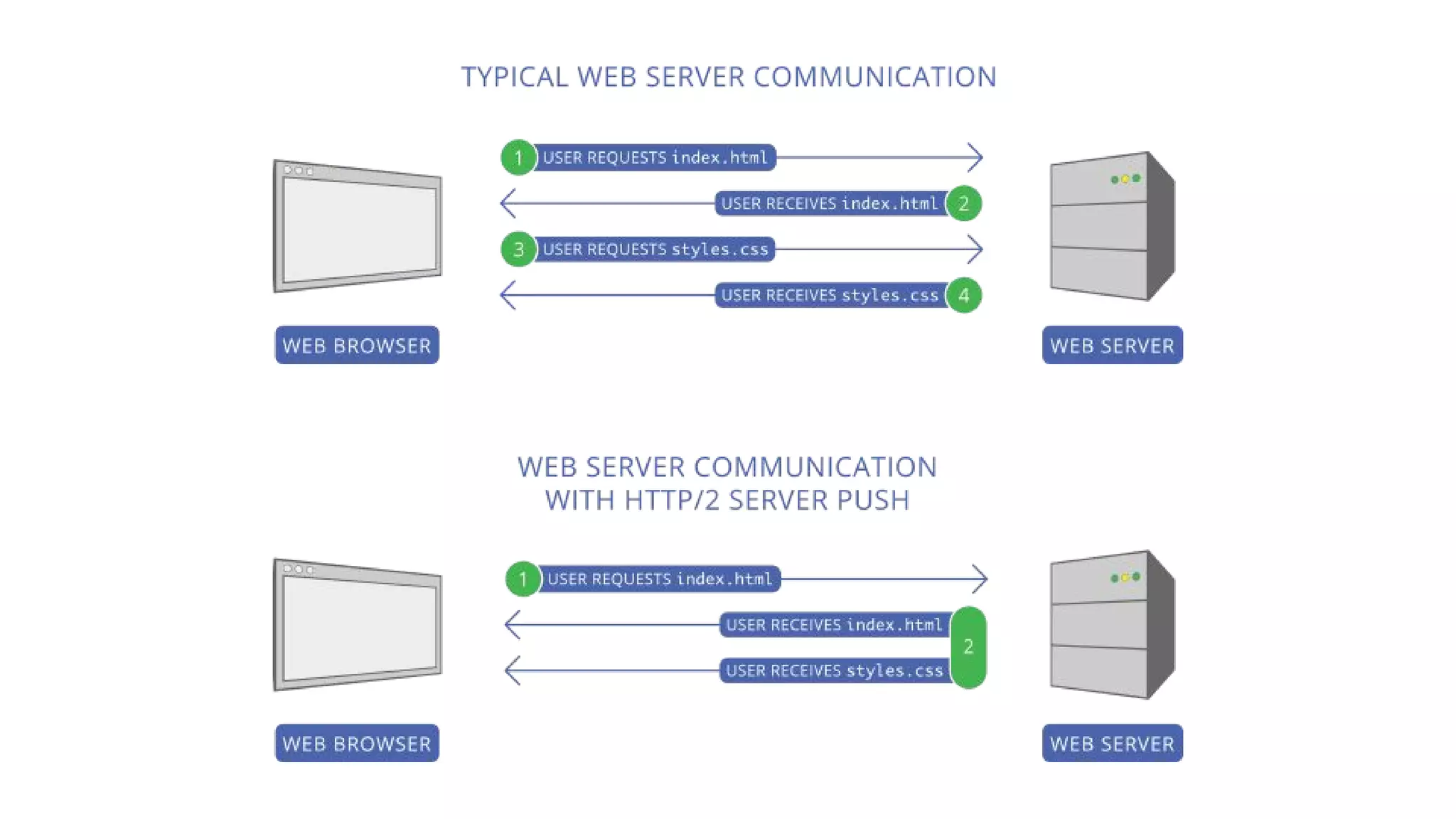 Serverpush pozwala na wysłanie zasobów do użytkownika zanim