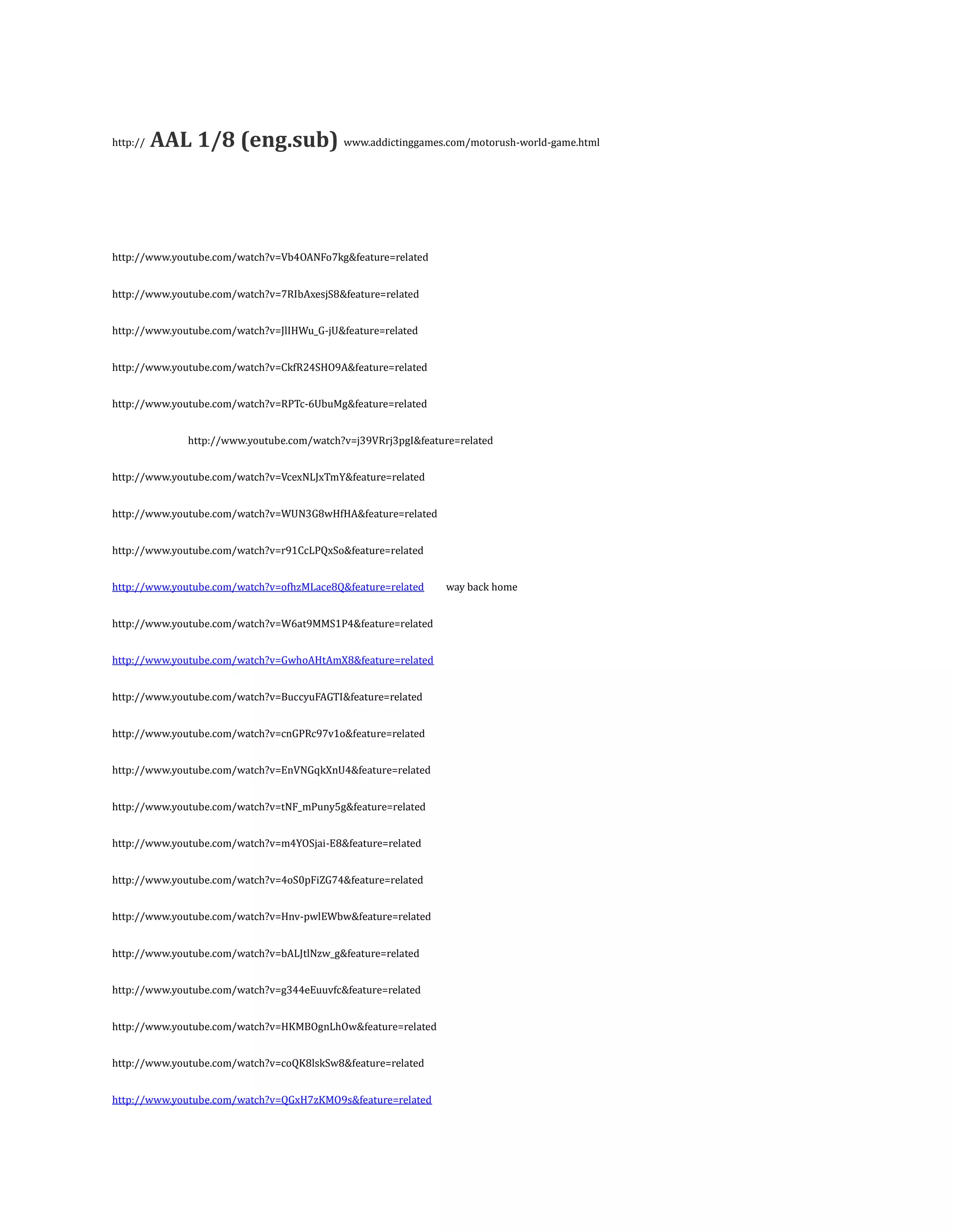 The document provides a list of 20 YouTube video URLs without any descriptions. It appears to be sharing various music videos but there is no context provided around the intent or purpose of the specific videos shared.
