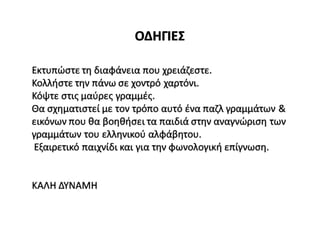 Παιχνίδι αλφαβήτας Για παιδιά του νηπιαγωγείου της πρώτης δημοτικού και για παιδιά με μαθησιακές και άλλες δυσκολίες