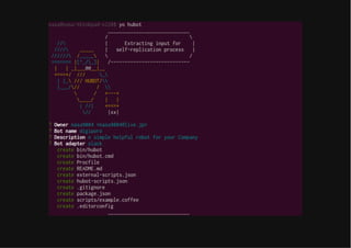 -g hubot coffee-script yo generator-hubot $ mkdir botdir $ cd botdir $ yo hubot