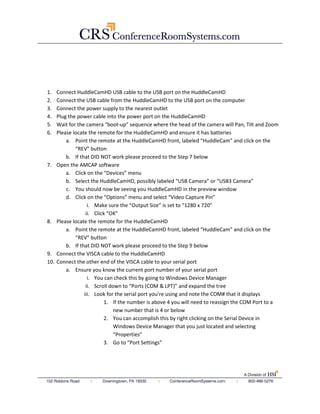This document provides instructions for flipping the image on a HuddleCamHD-3X camera. It involves connecting the camera to a computer via USB, opening AMCAP software to view the camera feed, then using either the camera's remote control or HD Camera Debugger software to flip the image by pressing the "REV" button. If the remote does not work, additional steps are provided to connect the camera to the computer via a VISCA cable and configure the correct COM port in the Debugger software to enable flipping the image.