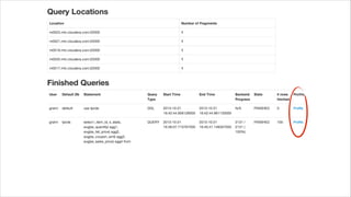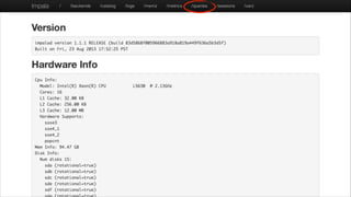 This document provides a summary of techniques for optimizing performance with Impala. It discusses how to choose optimal data types, leverage partitioning for pruning, use the efficient Parquet format, gather statistics, order joins, validate join types, and monitor resources. The document recommends adopting these techniques, analyzing explains plans, and using the Impala debug web pages to optimize performance. It also provides information on joining the Impala community to test Impala.